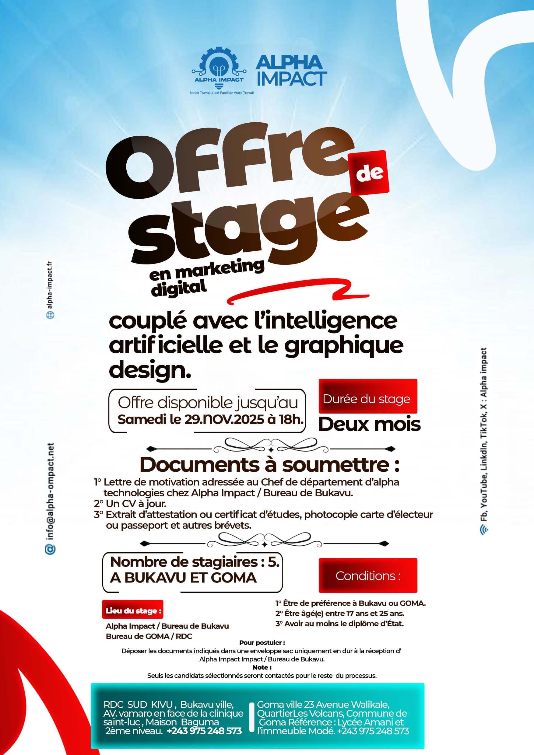 ? Alpha Impact lance une opportunité unique de stage en marketing digital, IA et design graphique Dans un monde en p...